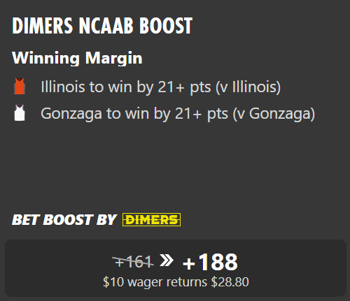 CBB Parlay Bet: Gonzaga to win by 21+ Points