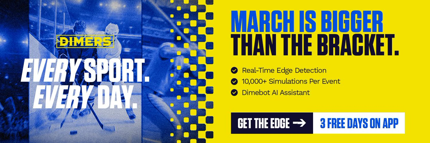 And this March, betting on CBB just got a whole lot easier with the launch of the Dimers App, where you can unlock a three-day free trial of Dimers Pro, giving you access to every single bet over the first days of the tournament.