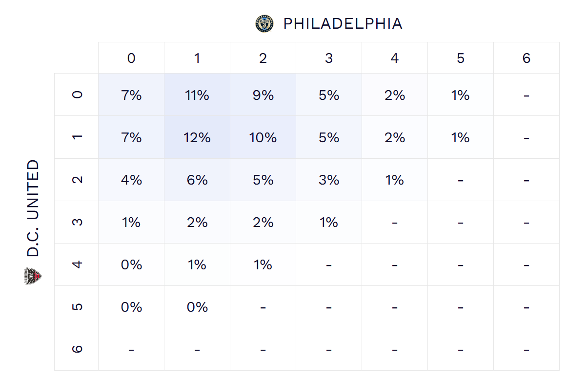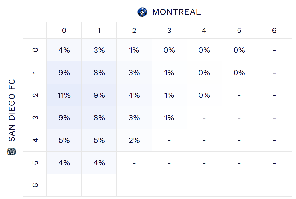 All season long, every week, Dimers’ data-driven algorithms simulate every MLS contest thousands of times, processing 1,000s of inputs across expected-goals metrics, rosters, recent form, and player-level data to predict the most likely scorelines over a full match.