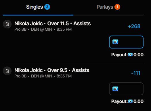 Dimers' assist projection for Nikola Jokic in Game 4.